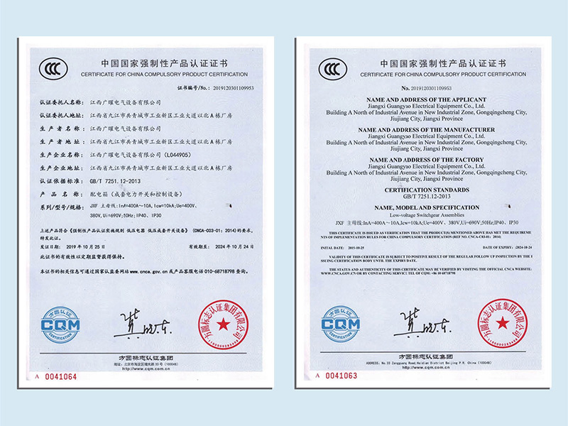 江西广曜电气设备有限公司坐落于江西省九江市共青城市工业新区。专注于高低压开关柜、箱式变电站等电气成套产品。为电力、能源、轨道交通、建筑、工业、基础设施等行业提供高效可靠的产品及解决方案。近年来为省内输变电工程提供了大量设计新颖、结构合理、质量稳定、运行可靠的产品,深受客户好评。