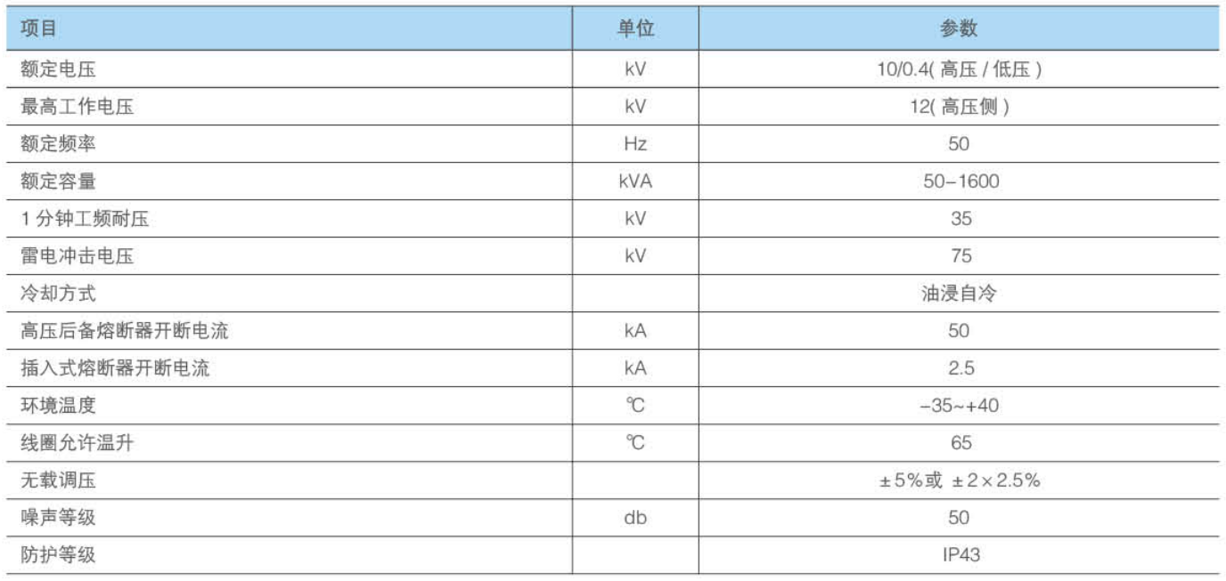 ◆采用油浸式S9或性能更优的S11系列变压器。